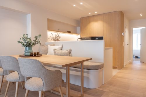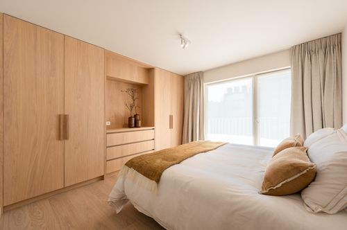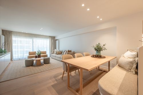 Magnifiek 3-slaapkamer appartement in hartje Knokke Le Zoute met direct zeezicht. Ontspan in alle luxe in dit appartement met 3 slaapkamers, waarvan 1 met terras, 2 badkamers en living met open keuken, terras en uitzicht op het strand en de zee. Alles werd smaakvol ingericht met maatkasten, kwalitatieve en duurzame materialen, o.a. in samenwerking met Scapa Home. Er is 1 gastentoilet en 1 wc per badkamer. In de gang zit een was- en droogkast weggewerkt in een maatkast.