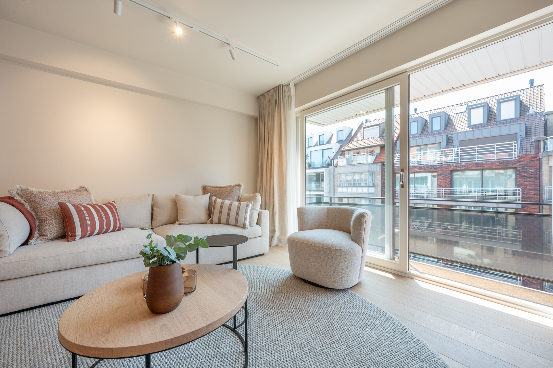 In het centrum van Knokke, vlak bij de Lippenslaan, ligt dit luxueus gerenoveerd appartement. Gelegen op het 3de verdiep met langs beide kanten een balkon. Het appartement omvat 2 slaapkamers, waarvan 1 met terras, living met open keuken en terras, badkamer, wc en berging met was/droogkast. Dit alles met kwalitatieve en duurzame materialen ingericht, in samenwerking met Scapa Home.